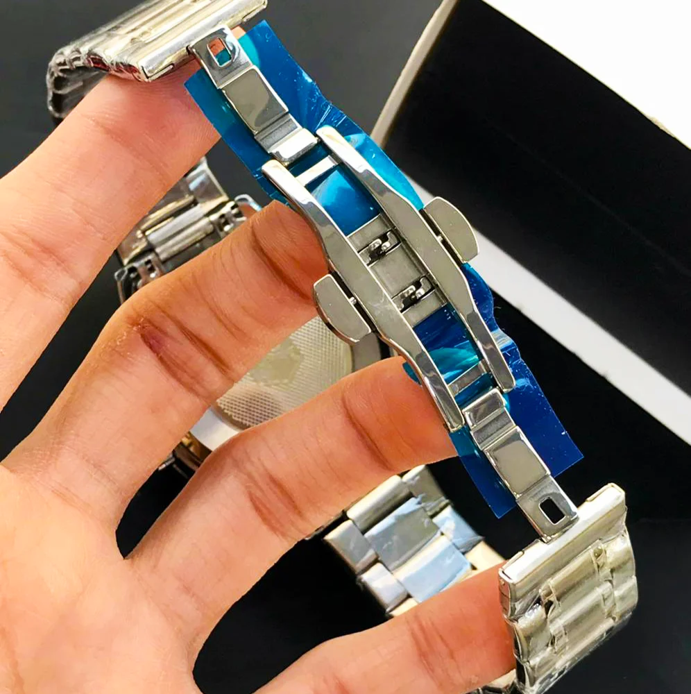 This model features a heavy-weight construction with a strong stainless steel chain and master lock, giving durability and confidence in daily use. The quartz machine ensures accurate timekeeping, while the date working function adds everyday practicality.