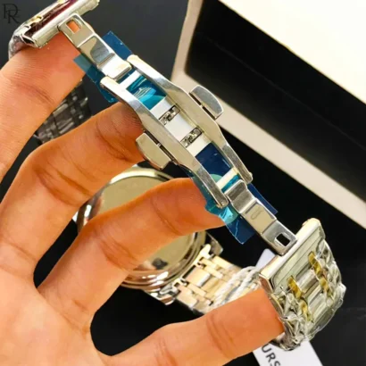 Powered by a reliable quartz movement, it ensures accurate timekeeping along with a working date display for daily convenience. The stainless steel chain combined with a secure master lock offers durability and a comfortable fit.