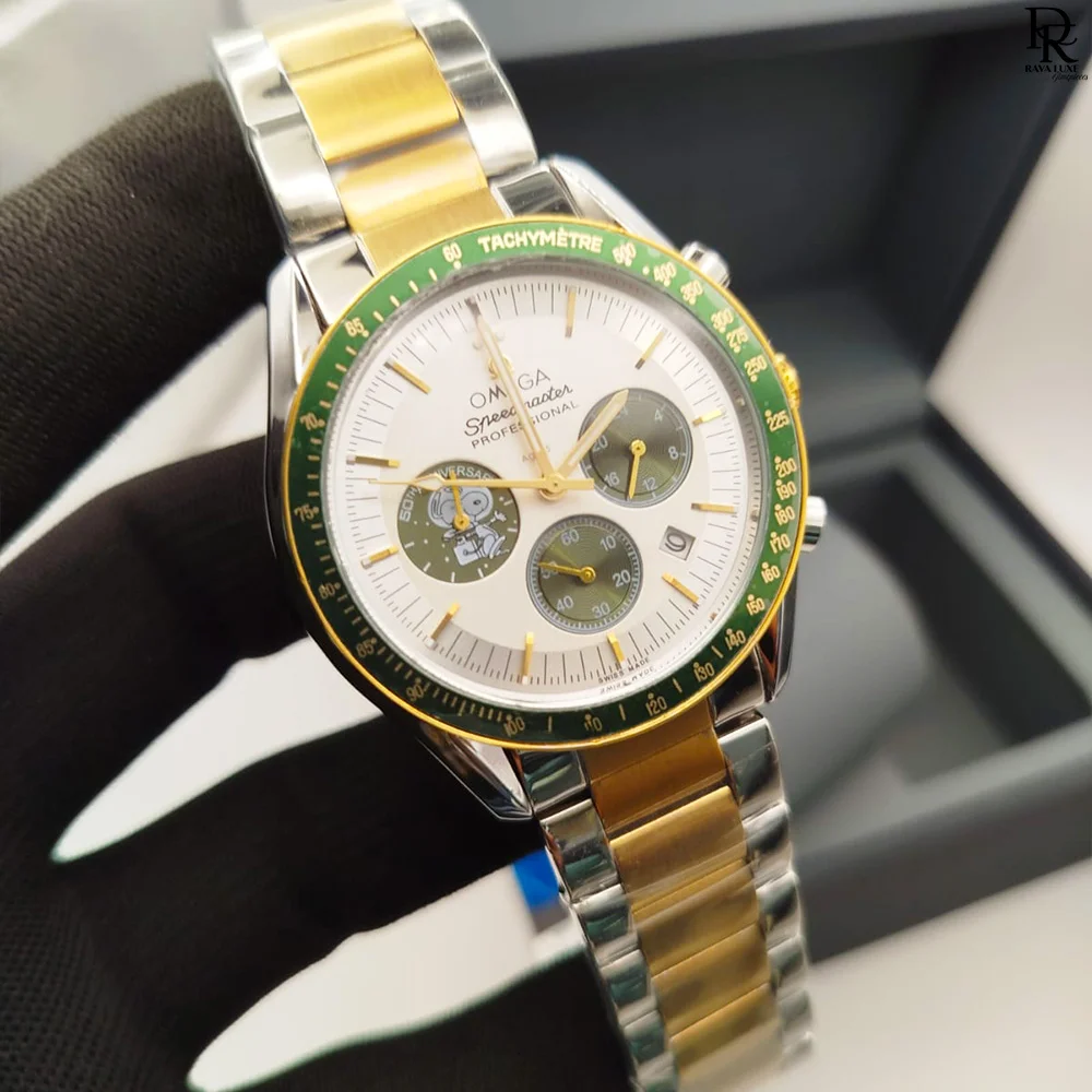 The OMEGA Speedmaster is a timeless masterpiece designed for men who value elegance, power, and precision. Featuring a high-quality quartz movement, fully functional chronograph, and date working dial, this watch is built with a heavyweight stainless steel chain and a butterfly back lock for maximum durability and comfort. Available in different colours, it blends luxury with performance, making it the perfect accessory for formal as well as casual occasions.