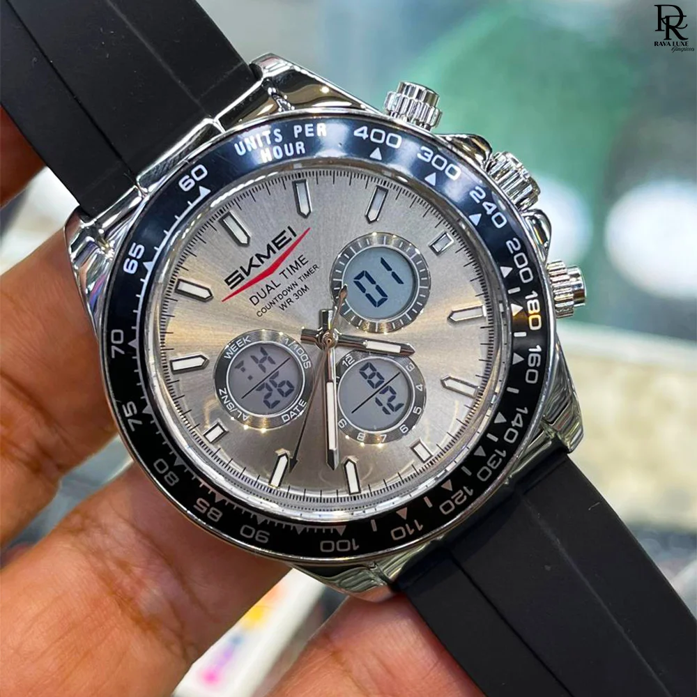 Upgrade your wrist game with the SKMEI Dual Time Sports Watch – a perfect mix of functionality and style. Designed with dual time working, a triple screen layout, and digital + analog display, this sporty timepiece is built for performance lovers. The comfortable rubber strap and durable construction make it ideal for sports, travel, and daily wear. Available in 2 attractive colours, it’s a must-have for men who value both toughness and trend.