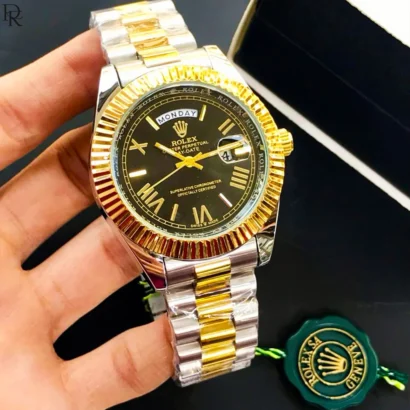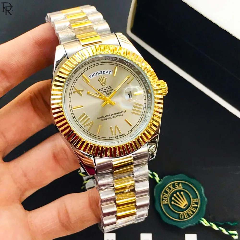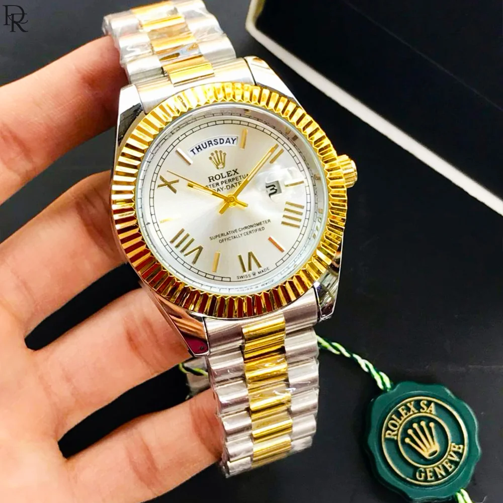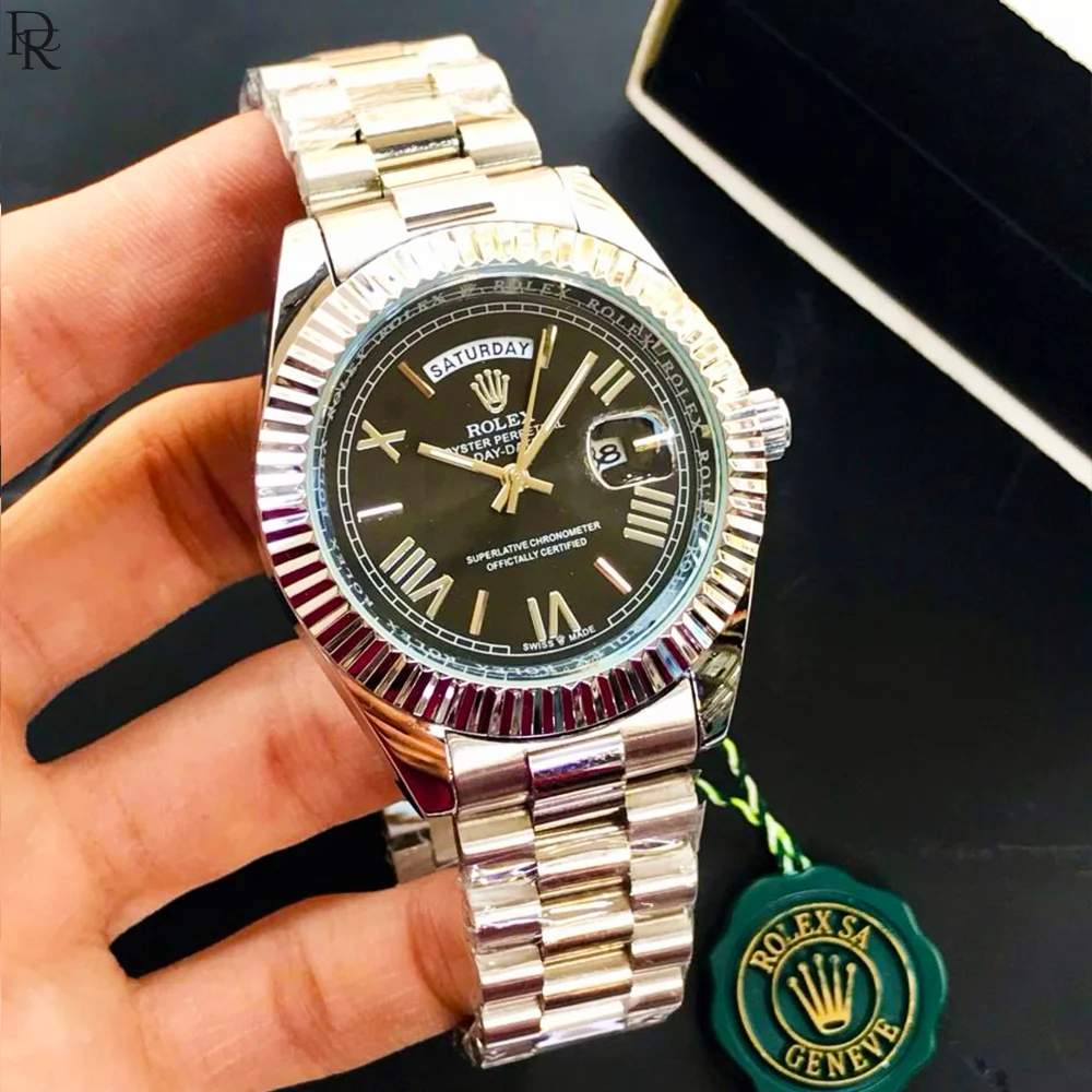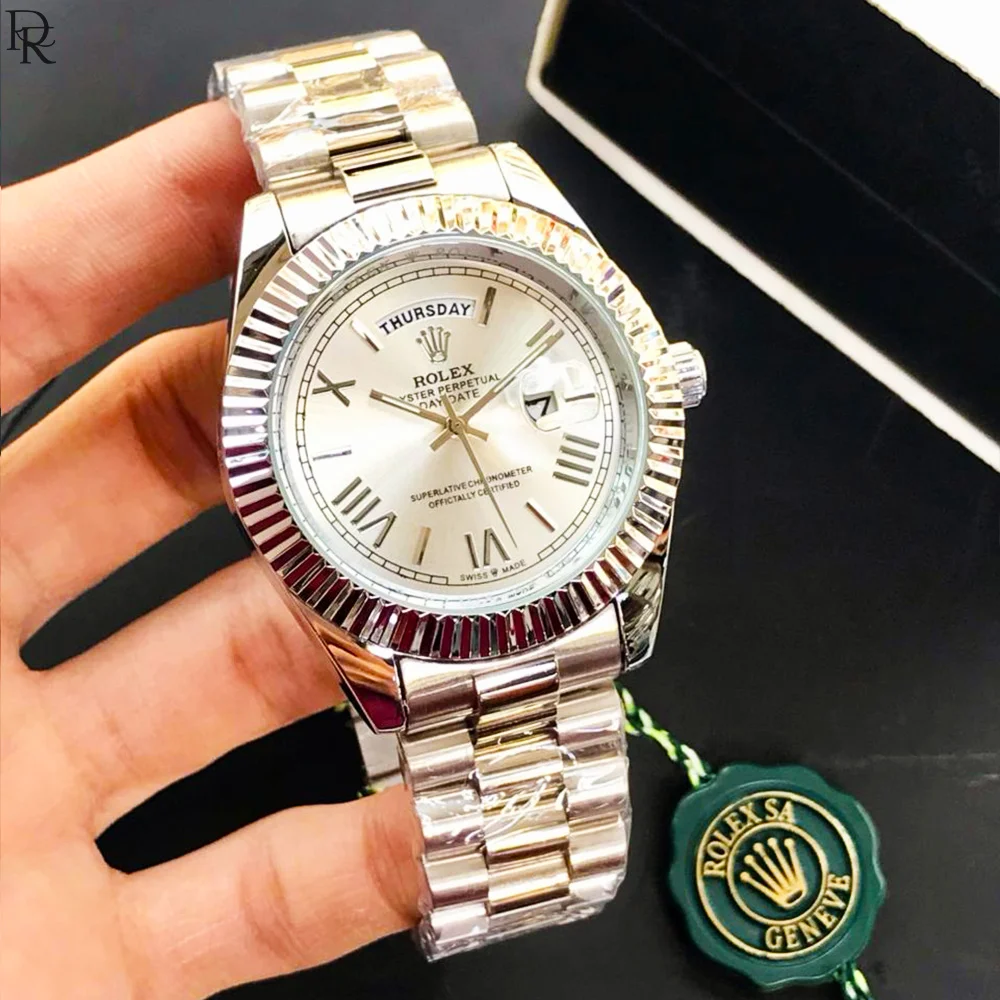 ROLEX Roman Model – Day & Date | Fluted Bezel | Steel Chain