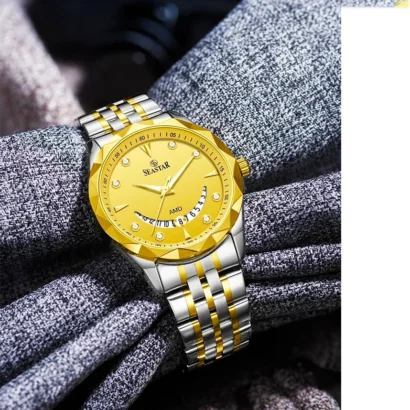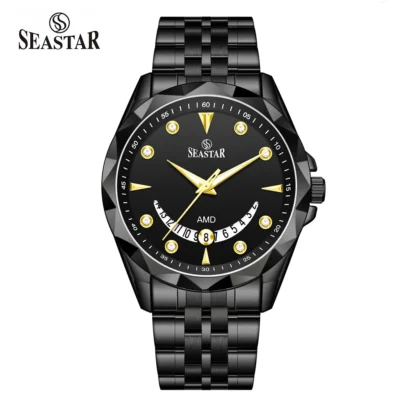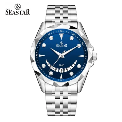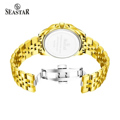 High-quality SEASTAR original watch with working date, stainless steel chain, and butterfly back lock. Premium look with durable build.