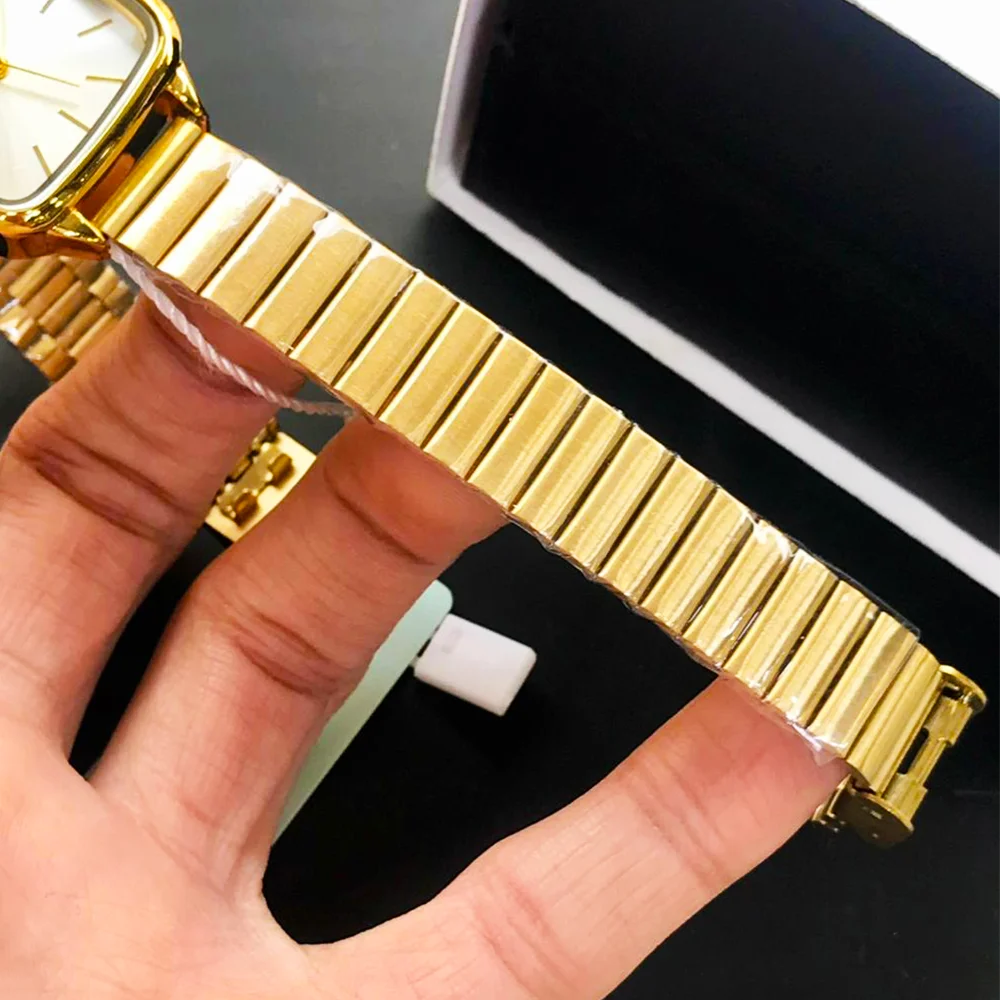 This model features a stylish square dial that gives a classic yet modern appearance, paired with a slim stainless steel chain for comfort and durability. The quartz machine ensures accurate timekeeping, while the adjustable lock allows a secure and perfect fit on the wrist.