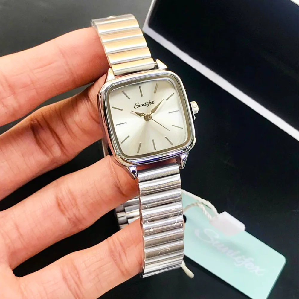 SUNLIFEX original women’s watch with a vintage square dial, elegant design, quartz movement, and stainless steel chain — perfect for classy daily and formal wear.