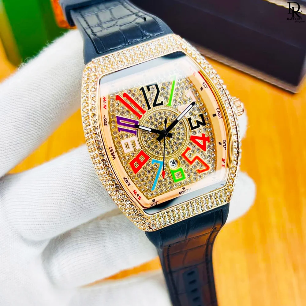 Luxury meets brilliance π with the Franck Muller Full Iced Stone Watch, featuring a sparkling stone-set case, elegant leather strap, and date functionality β a true statement of prestige at Rs. 4,499/- Only.