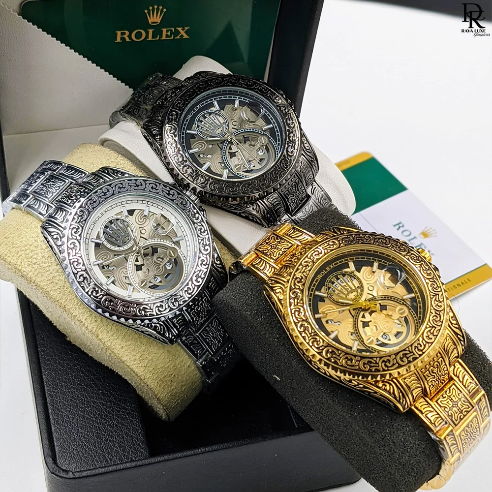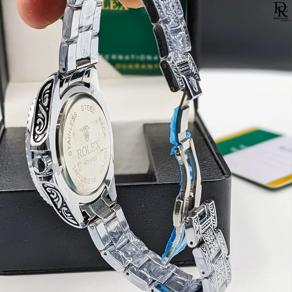 Introducing the Rolex Men’s Watch, crafted for those who appreciate luxury and precision. This premium timepiece features detailed engraving, a date function, and a butterfly lock for a secure and comfortable fit.