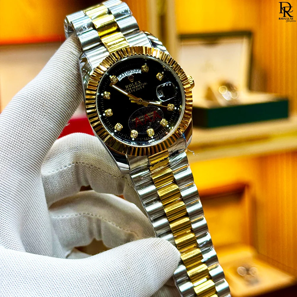 A high-quality second copy of the iconic Rolex – featuring Quartz Movement, Day/Date working, and Taj Lock with premium finishing.
