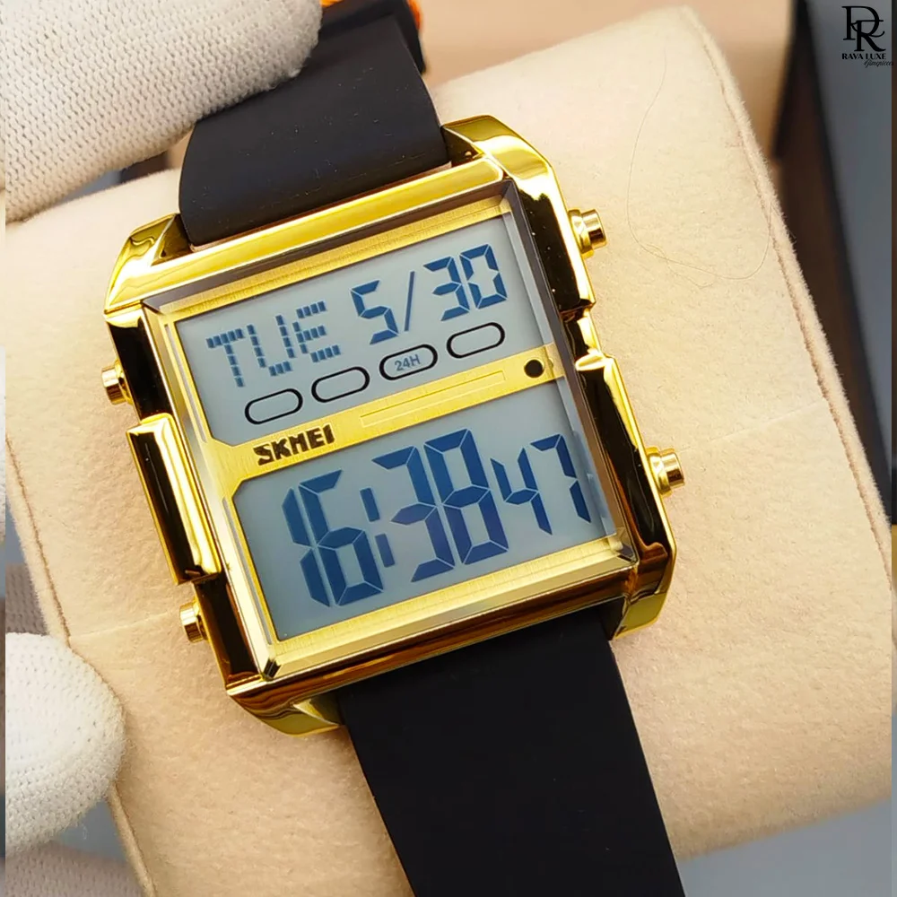 Premium SKMEI Men’s Watch | Full Digital Display 💻 | Time, Date, Alarm, Stopwatch ⏱️ | Silicon Rubber Strap | Steel Bod
